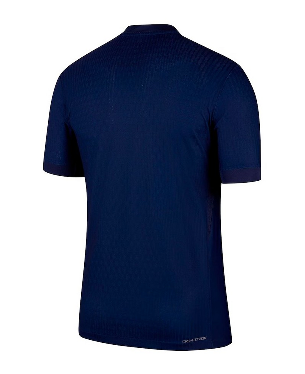 A camisa titular do PSG 2025/26, assinada pela Nike, resgata mais uma vez o icônico design Hechter. O manto chega em um elegante tom Midnight Navy, realçado pela tradicional faixa central em vermelho e branco, reforçando a identidade e a imponência do clube parisiense.