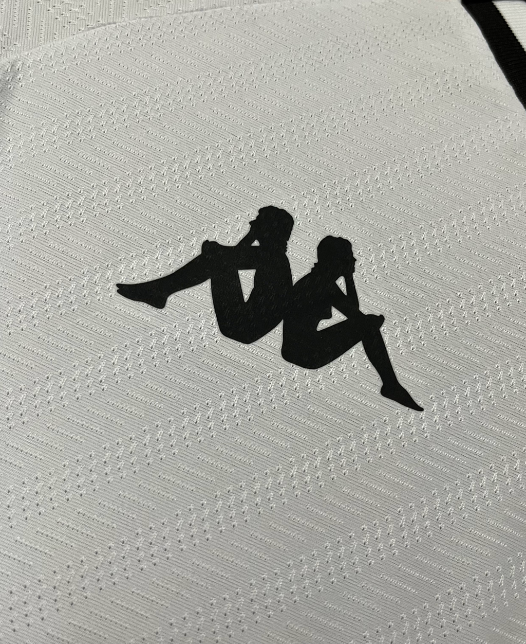 O uniforme reserva do Vasco para 2025 traz um design moderno e cheio de identidade. Com gola em formato de 'V', apresenta uma faixa preta mais fina na parte frontal e ostenta com destaque a tradicional Cruz de Cristo no escudo — um símbolo de história, fé e paixão vascaína.